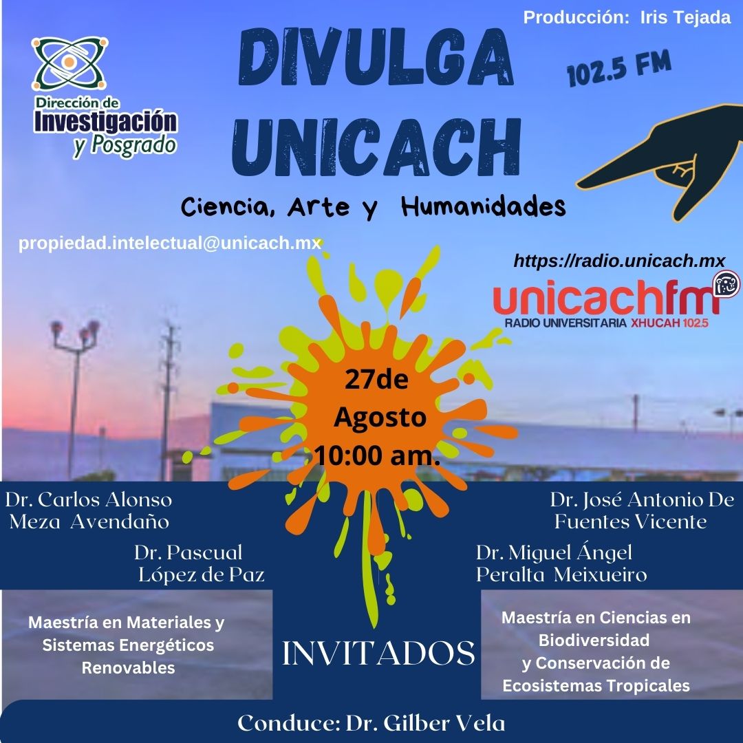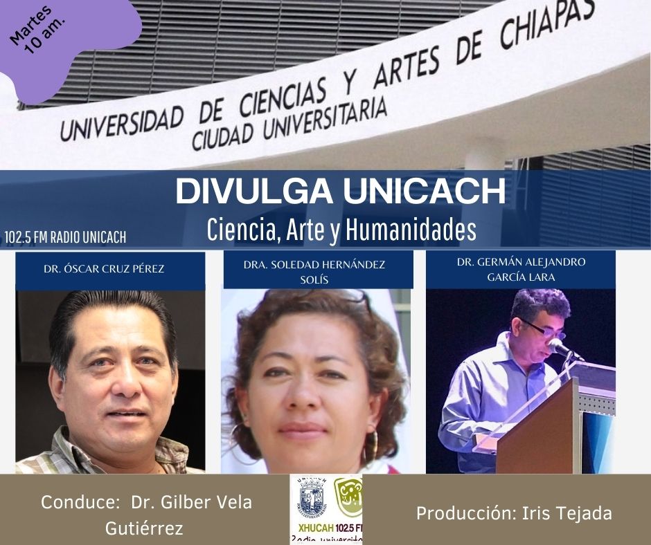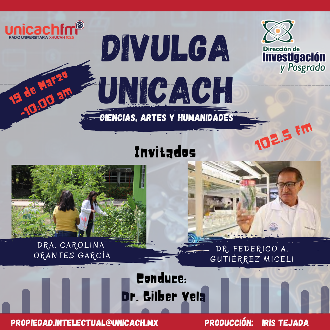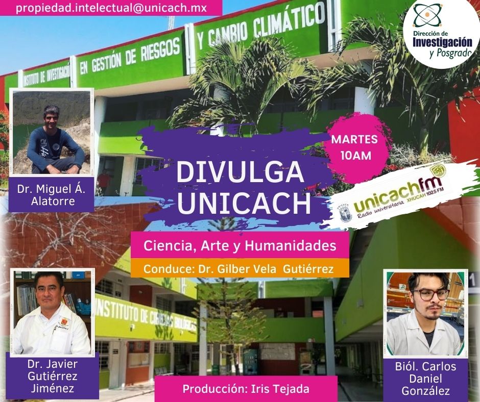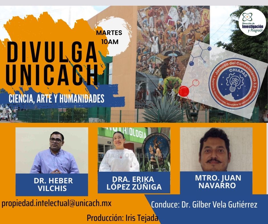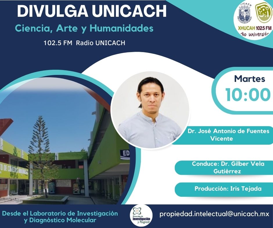 La nueva programación de DIVULGA UNICACH, tiene como finalidad dar difusión al trabajo científico y tecnológico de los investigadores, mediante coberturas en vivo en los laboratorios y espacios de formación de nuestra casa de estudio, donde se entrevistará a las y los investigadores encargados de estas áreas, tendremos la oportunidad de platicar sobre las actividades de investigación, creación e innovación que realizan acompañados de los estudiantes en formación, así como, el propósito del laboratorio y el equipamiento con el que cuenta para brindar el servicio a la comunidad universitaria. Además, nos comentarán sobre las actividades que realizan con personal externo a nuestra universidad.