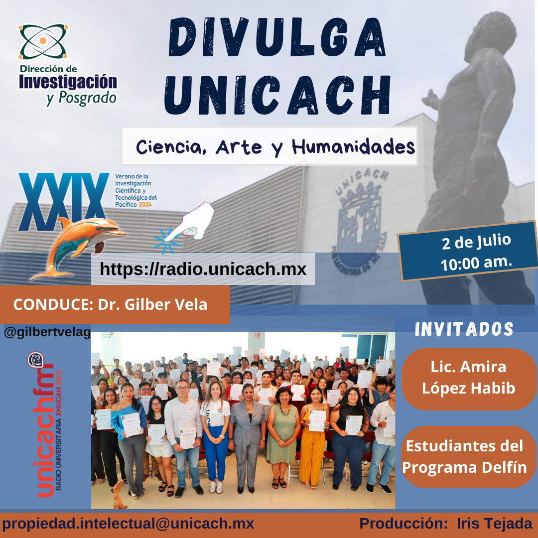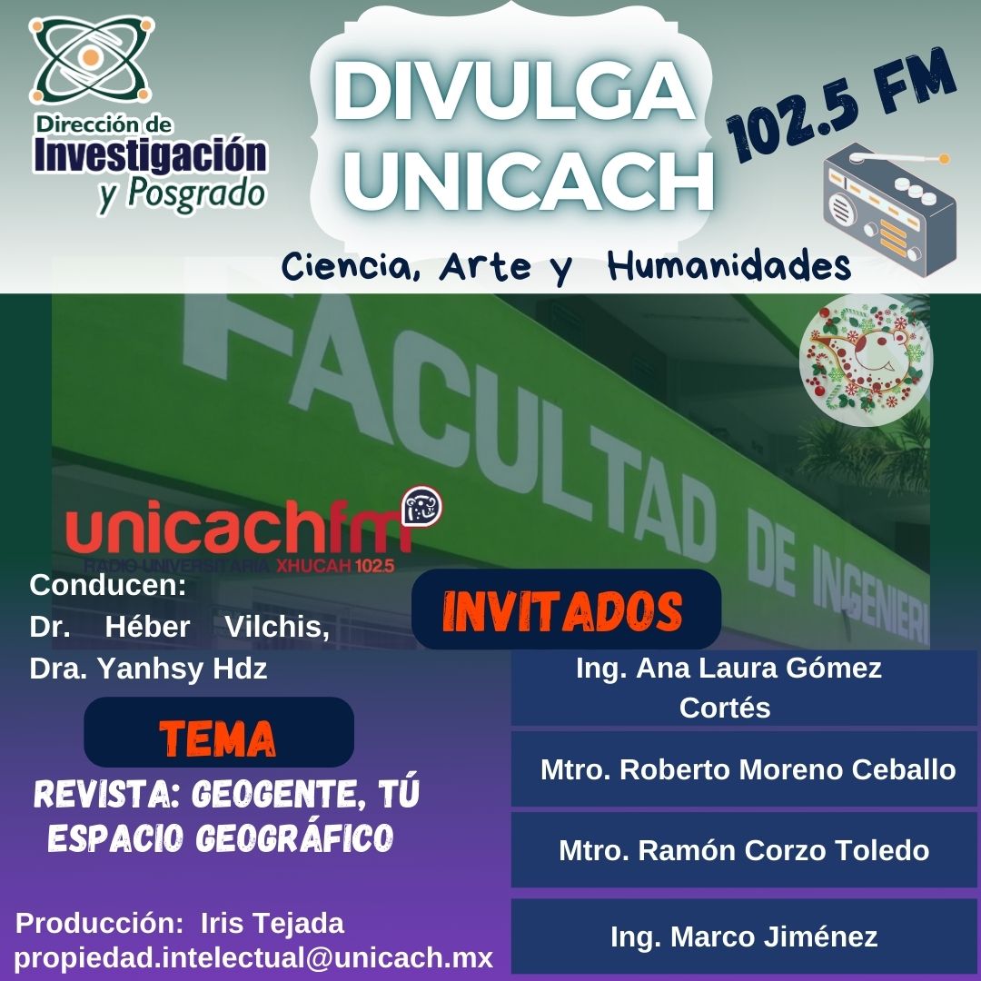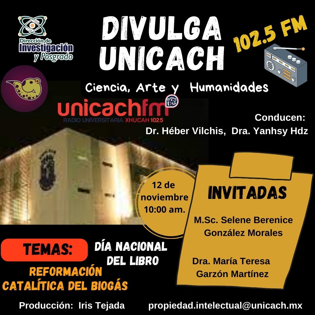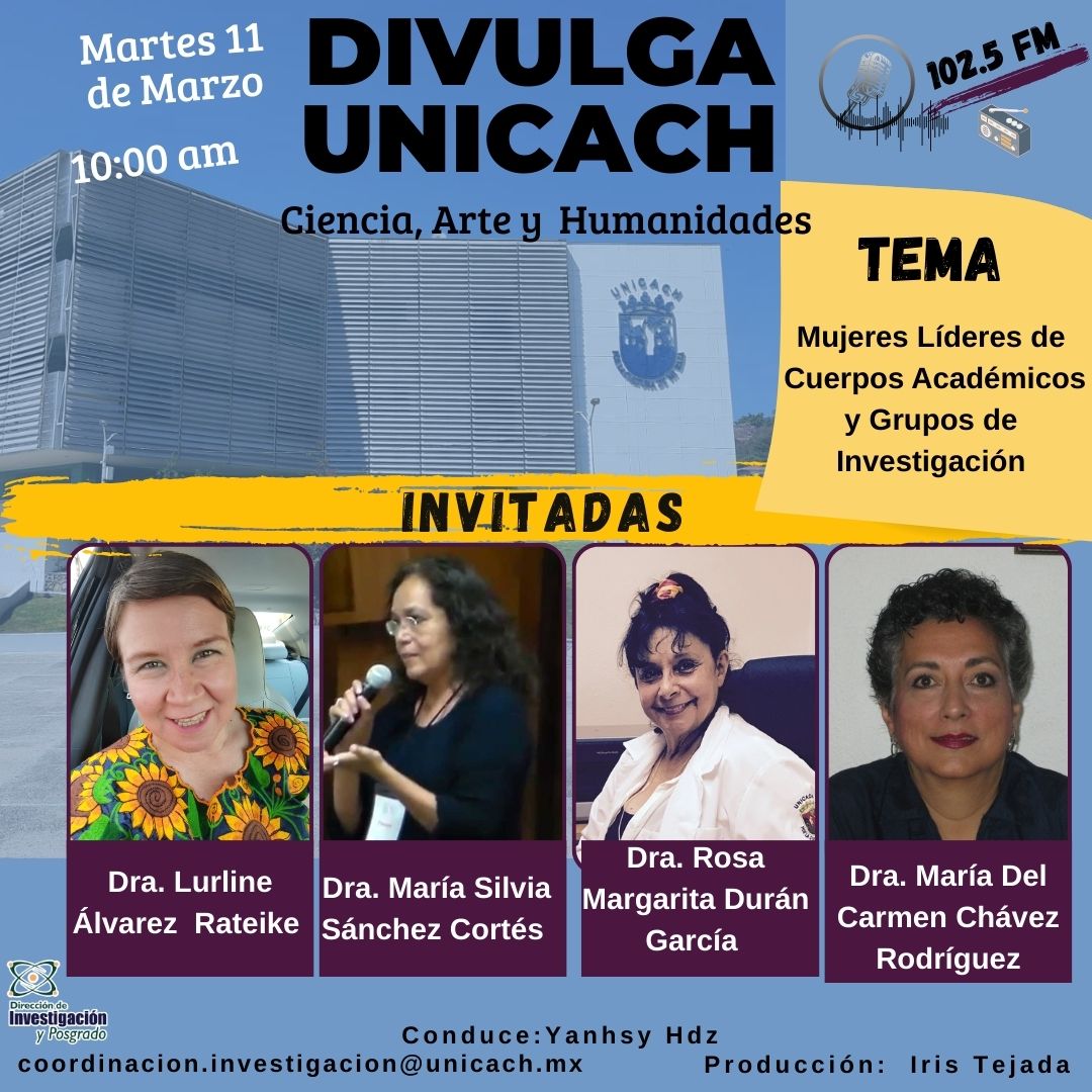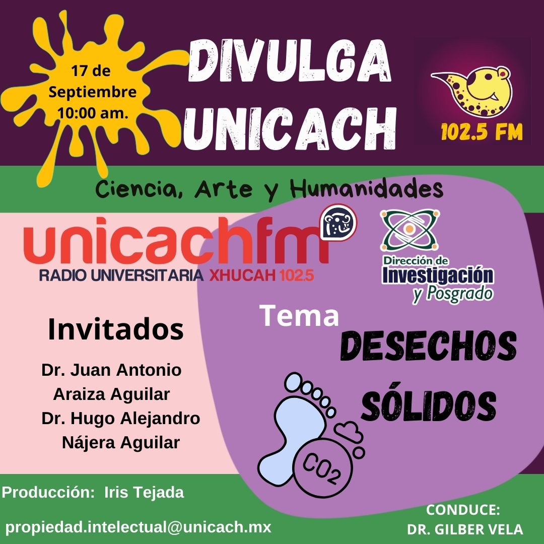La nueva programación de DIVULGA UNICACH, tiene como finalidad dar difusión al trabajo científico y tecnológico de los investigadores, mediante coberturas en vivo en los laboratorios y espacios de formación de nuestra casa de estudio, donde se entrevistará a las y los investigadores encargados de estas áreas, tendremos la oportunidad de platicar sobre las actividades de investigación, creación e innovación que realizan acompañados de los estudiantes en formación, así como, el propósito del laboratorio y el equipamiento con el que cuenta para brindar el servicio a la comunidad universitaria. Además, nos comentarán sobre las actividades que realizan con personal externo a nuestra universidad.